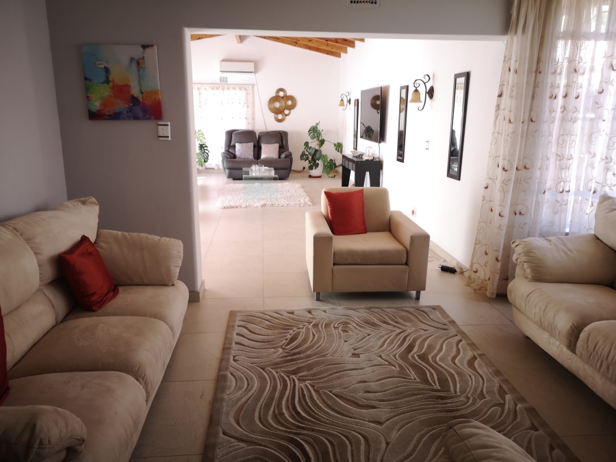Main House: The main house is spacious and comfortable, featuring three bedrooms and one bathroom. Additionally, it includes a separate toilet and an en-suite bathroom for added convenience. The property boasts two kitchens, perfect for accommodating a large family or entertaining guests. A lounge, dining room, and living room with a built-in braai offer multiple gathering areas. A large porch extends the entertainment space, creating a seamless indoor-outdoor living experience. Covered parking for up to six vehicles ensures protection from the elements, and there's also a workshop for hobbyists or farm-related activities.