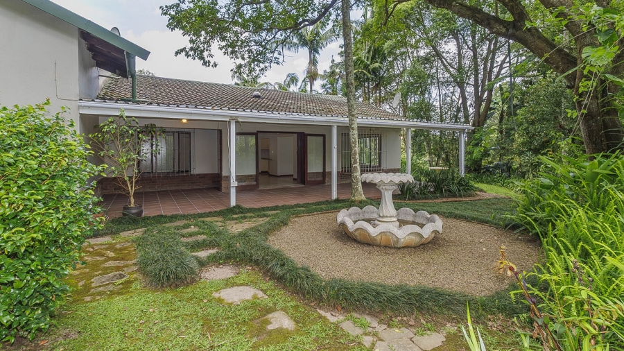 The spacious yard offers a safe environment for children to play and for pets to roam freely.