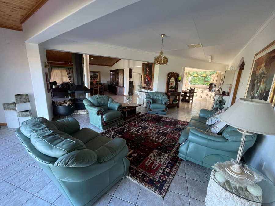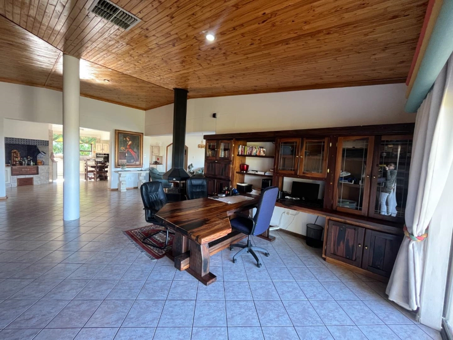 Step inside to expansive, free-flowing living areas including a lounge, dining room, family room, and a modern kitchen with gas hob, double eye-level oven, walk-in pantry and scullery/laundry for added convenience. Large windows and sliding doors open onto a patio with built-in braai – perfect for entertaining while enjoying spectacular views.