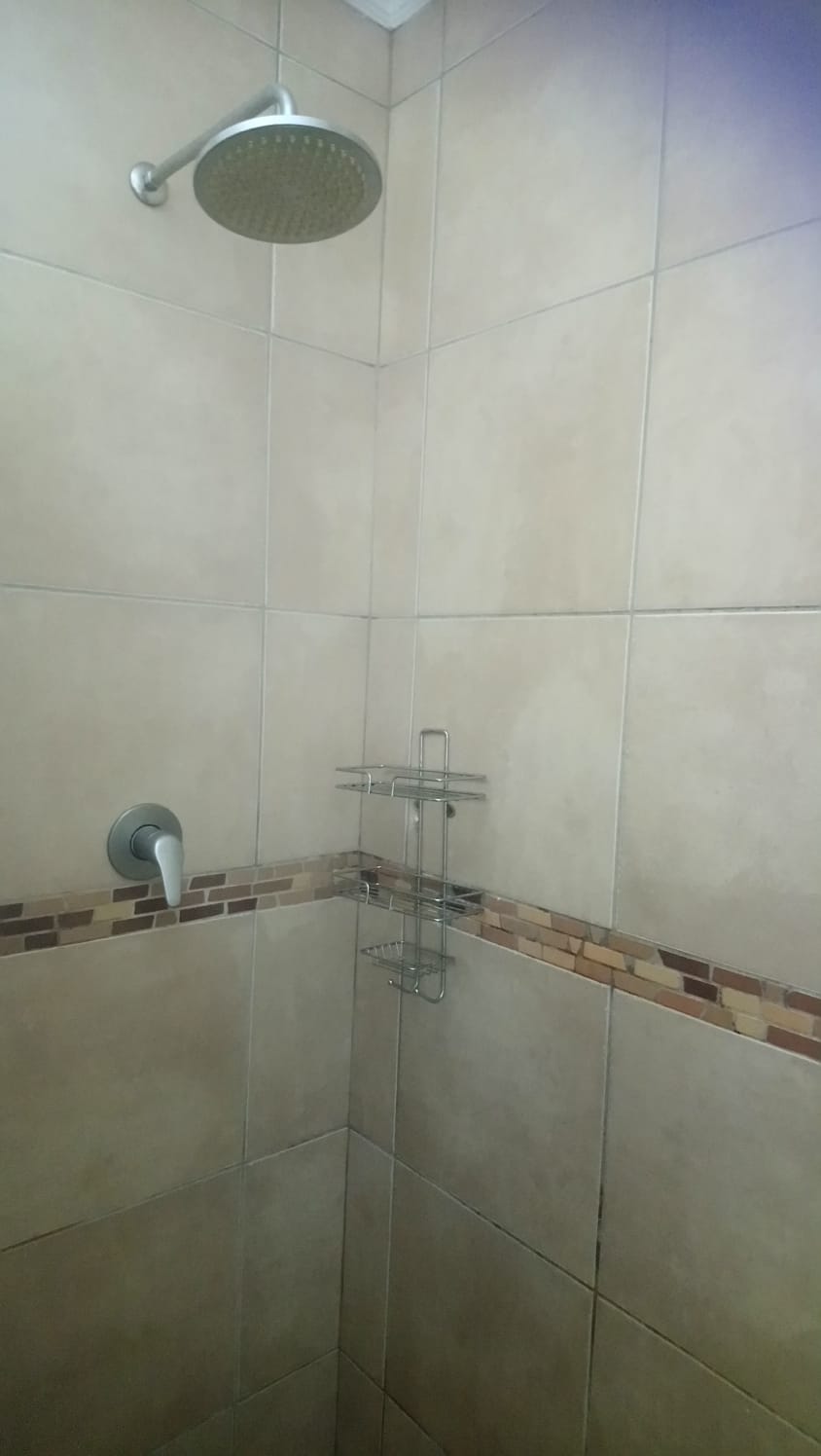 Stunning 3 bedroom simplex. Each bedroom has built-in cupboards with aircon units in 2 of the rooms. 1 bathroom with a shower, loo, basin and blinds. 1 kitchen with a ceiling fan, built-in cupboards and an extractor fan. Spacious lounge with an aircon and ceiling fan. There is also a dining room area and a veranda. There is a double carport attached to this unit. There are two wendy house. This simplex is fully fenced. There is an alarm for tenants cost as well as a spacious garden.