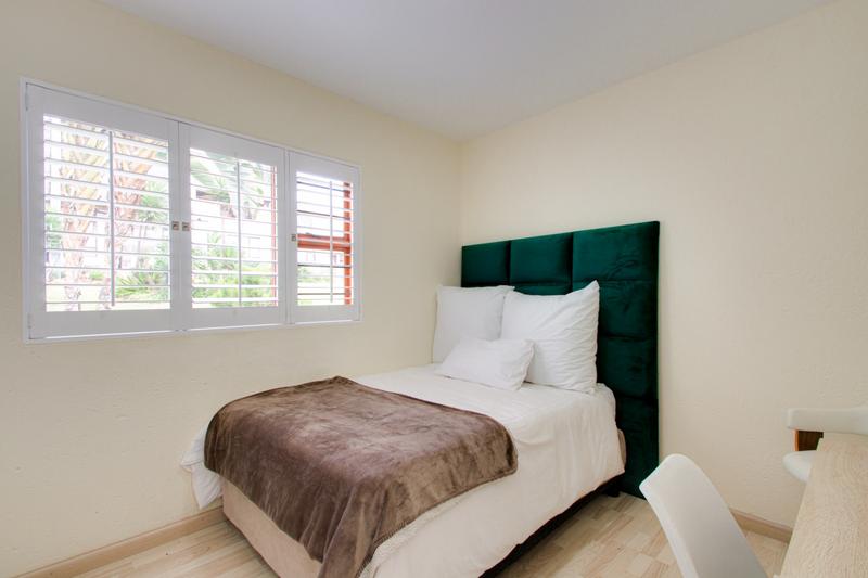 Nestled in a serene Randburg neighborhood, this tastefully furnished 2-bedroom, 3-bathroom duplex is a perfect haven for a growing family, blending luxury finishes with family-friendly functionality. The ground floor welcomes you with an open-plan kitchen, a culinary masterpiece featuring glossy white cabinetry, quartz countertops, a central island, and top-tier stainless steel appliances, including a oven and gas stove for your convenience. The two spacious bedrooms, both on the ground level, are designed for comfort: the master suite boasts plush floors, a king-sized bed, built-in wardrobes, and a lavish en-suite bathroom with a shower, frameless glass shower, and dual vanities. The second bedroom, ideal for children or guests, offers a double bed, ample storage, and easy access to a second full bathroom with modern fixtures and vibrant tile accents. Upstairs, a stylish lounge area with sleek floors, a plush sofa, and a smart TV opens onto a large north-facing balcony, perfect for family braais or relaxing with views of the leafy surroundings. A contemporary shower room with mosaic tiles completes the upper level. The duplex includes two secure parking bays, a small but convenient play area, and smart home features like fibre internet, climate control, and 24-hour security in a guarded complex. With proximity to Randburg’s top schools, parks, and Cresta Shopping Centre, Ferndale on Republic, this home offers an elegant, practical lifestyle for a family seeking both sophistication and suburban charm.
