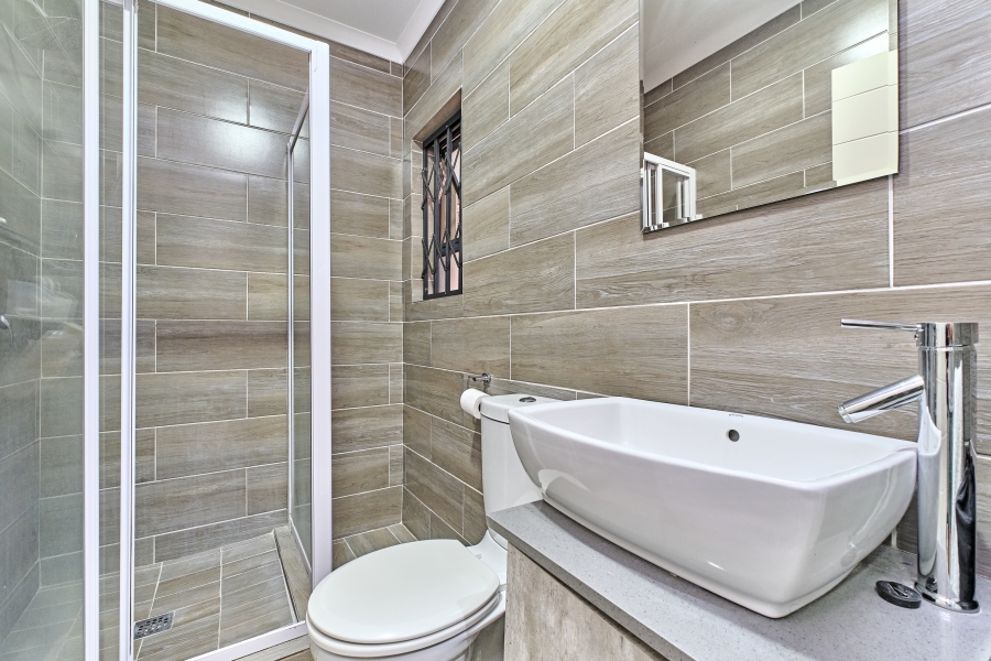 This centre unit is one of three penthouses in the block, priced at R2 950 000 and the two side units are priced at R 2895 000 each. All have three bedrooms with en-suite bathrooms (with showers) and two undercover parkings. All have balconies and good inland views.