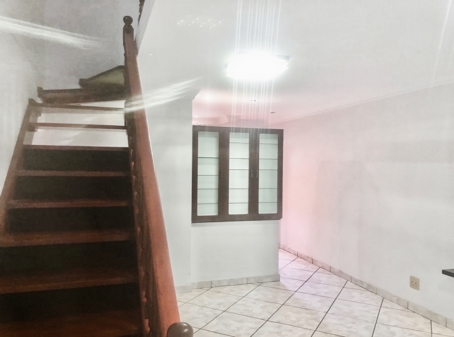 The home features separate lounge and dining rooms, with tiled flooring throughout, though the lounge does not have a ceiling fan. A linen cupboard is located in the passage for extra storage. Additional features include gas geysers, a CCTV system, and an alarm system for enhanced security. A 2,000-litre JoJo tank provides water storage, and the single lock-up garage, complete with a workshop, has the potential to be converted into a flatlet. This home is perfect for those seeking a property with room for personalization in a convenient central location.