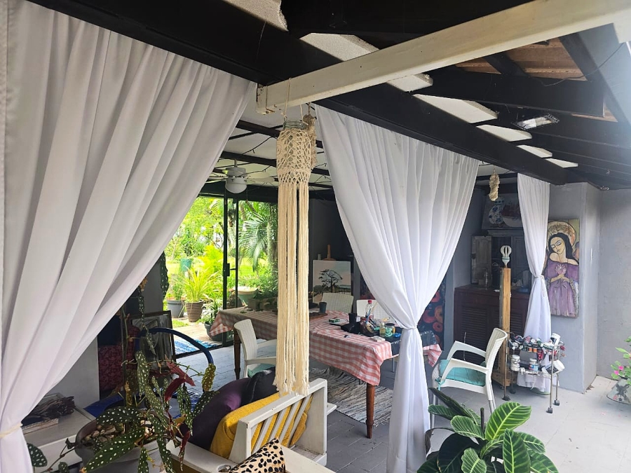 The lounge has high pine ceilings and a wood burner fireplace, with double doors leading out to the very natural surrounding 'bushveld'.
