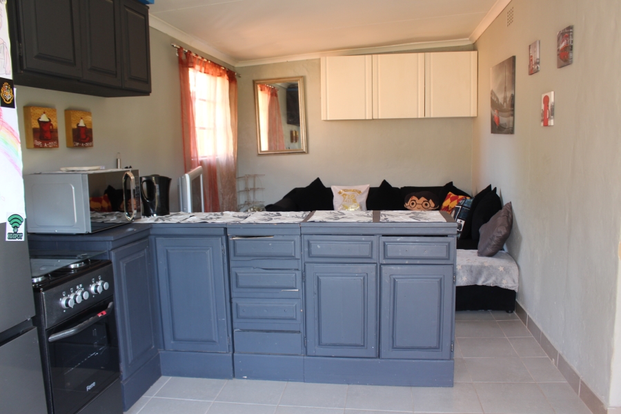 Cottage for mom and dad or newlyweds wanting their own space, consists of an open plan lounge and kitchen, a huge bedroom and a bathroom with a shower. Gas stove and geyser. This property borders Discovery and Horison.
