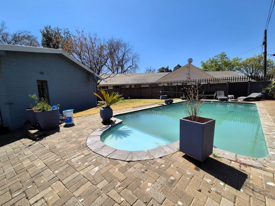 Downstairs is a guest bathroom with a shower, basin and toilet and a bedroom with a full en-suit bathroom and built in cupboards. The modern kitchen is fitted with ample cupboard space and features white granite counter tops and is open to the dining area which has double doors leading to the garden. The garden is level for easy maintenance and boasts a gazebo with built in braai overlooking the sparkling swimming pool, designed for entertaining and relaxing.