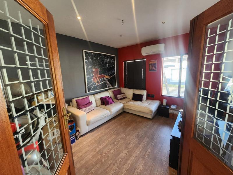 A stunning family home with 3 bedrooms, upstairs with main bedroom with own balcony and build in braai.2nd room also with a balcony. 4th Bedroom downstairs can be used as or domestic courters. Jacuzzi with own bathroom 3,5 bathrooms, Stunning kitchen, spacious open plan living areas, and a entertainment room.
