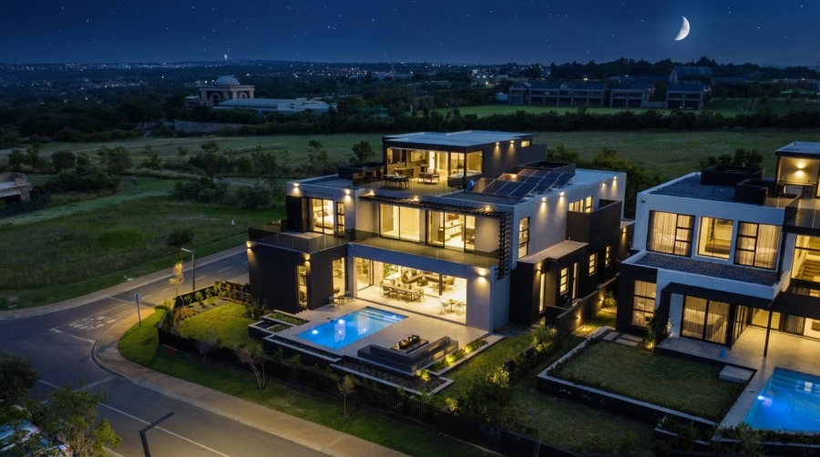 Set within the prestigious Steyn City Estate, this ultra-modern 4-bedroom, 4.5-bathroom architectura...