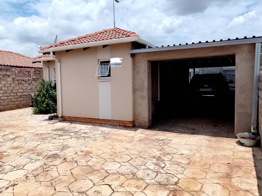 Step into this spacious 3-bedroom townhouse, where modern meets rustic charm. The home is bathed in natural light and features two sleek, modern bathrooms. You'll appreciate the convenience of two garages and an additional carport to accommodate all your parking needs. The open-plan layout is fully tiled for easy maintenance and integrates a sophisticated kitchen—equipped with a gas stove—into the lounge, dining area, and covered stoep. Entertain with ease using the built-in braai, overlooking your own garden oasis. Additional amenities include a solar geyser, generator backup space, and pre-installed DSTV cables. A water connection for your washing machine is conveniently located in the garage.